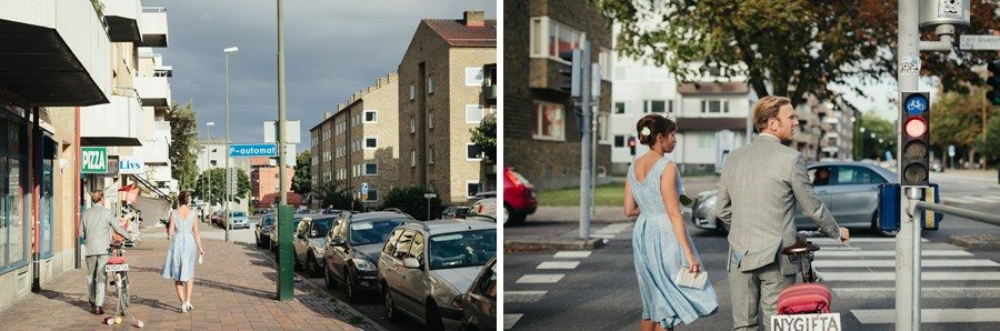 Vi valde att gå från Tyska kyrkan till Malmö Opera Grill där middagen, festen och dansen skulle vara. Jag verkligen älskar när man bara går och vid varje liten inspiration stannar man och fotograferar. Det blir så mycket mer levande och spontant när man gör på detta vis. Jag är övertygad om att det syns i bilderna och att brudparet kan se det i sig själva fortfarande om 30 år.